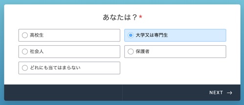 ⑵ 該当するものを選び ”NEXT” をタップ