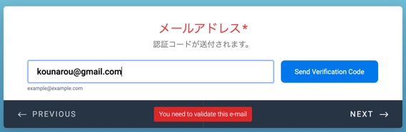 認証コードを登録したアドレスに送付します。